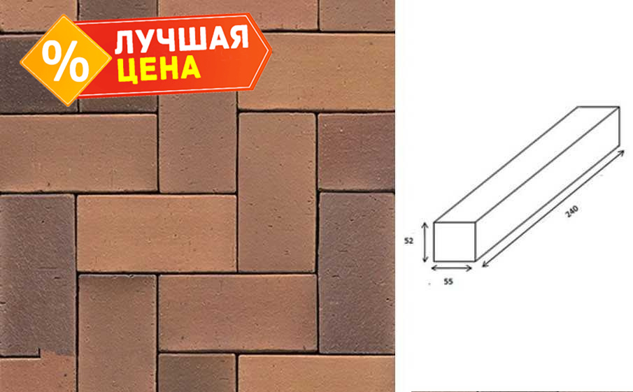 Клинкерная брусчатка Muhr №08S Lachsrot spezial, 240x55x52 мм